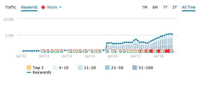 It quickly became apparent that it wasn’t just a few articles here or there: the site’s traffic and rankings were in a tailspin.