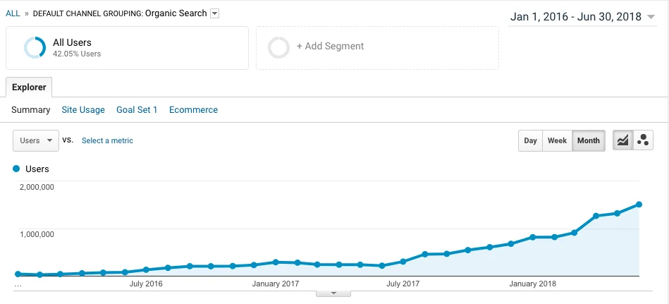 The strategy had an almost immediate effect on the traffic, and in that same month, Digital Trends regained their lost traffic, hitting 300,000 organic visitors for July 2017.